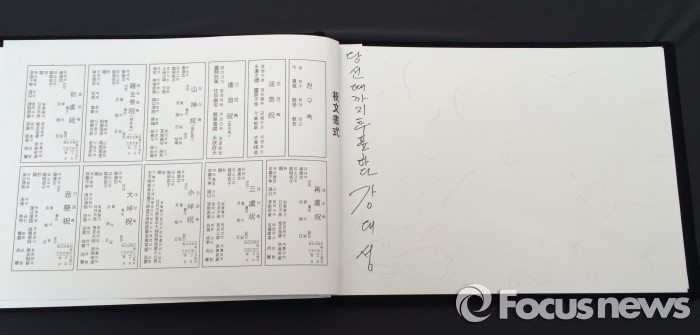 | △ 서울광장에 설치된 고(故) 김영삼 전 대통령 분향소에 비치된 방명록 모습. <사진제공=포커스뉴스> |