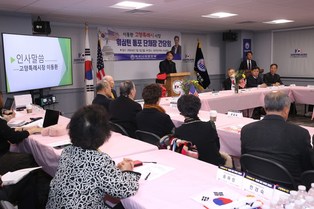 [부자동네타임즈 = 김인수 기자] 이동환 고양특례시장은 지난 1일(현지시각) 미국 워싱턴D.C. 코리안커뮤니티센터에서 동포 단체장들과 신년 간담회를 갖고 고양시-한인 커뮤니티 간 교류 및 경제협력에 관해 논의했다.