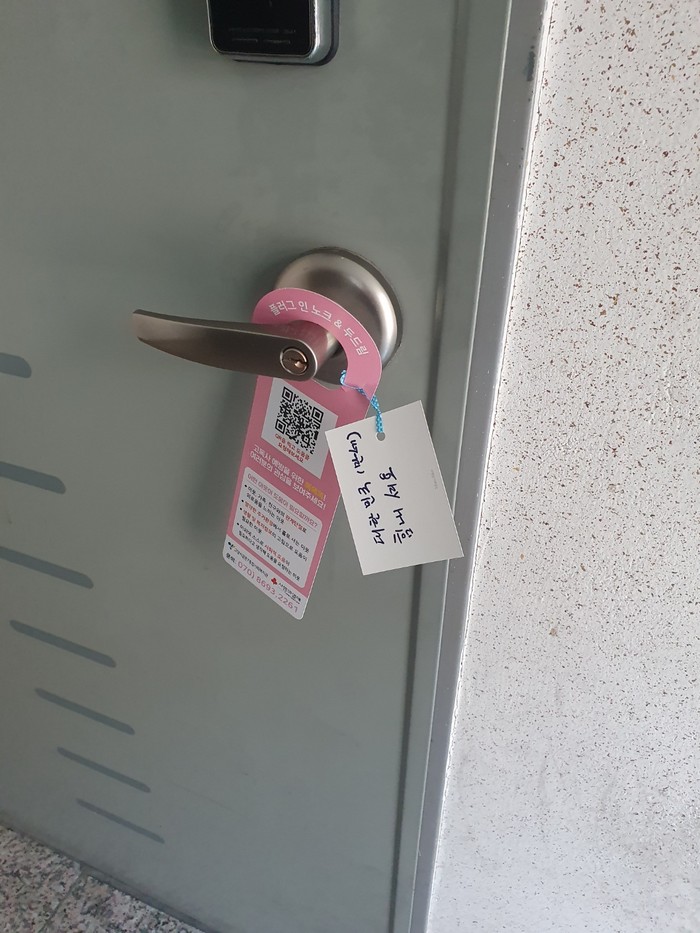 이날 대화동 관내 다가구주택들을 대상으로 3개 조로 나누어 집집마다 문고리 홍보지와 희망 메시지를 전달했다.