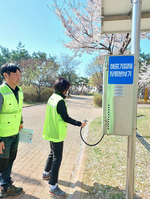 특히 박람회장을 찾는 관람객과 이용자가 많을 것으로 예상되는 호수공원 인근 수변공원, 황룡산 입구 등을 중심으로 하여 △포충기 가동 여부 △해충기피제 자동분사기 등 작동상태 및 보관상태 △기피제 잔량 등을 확인해 시민들이 불편함이 없이 사용할 수 있도록 할 방침이다.