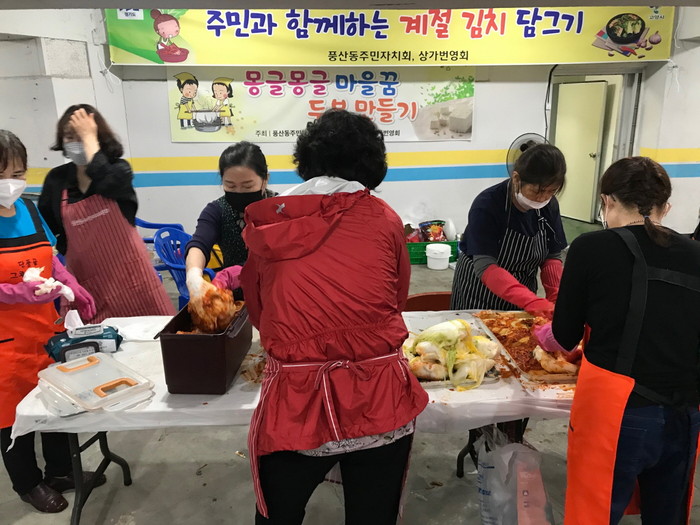 [부자동네타임즈 김인수기자] 고양시 일산동구 풍산동 주민자치회(회장 이석재)는 지난 14일~15일 양일에 걸쳐 풍산동 주민 자치위원들과 주민협의체 및 지역 상인회가 중심으로 지역 내 소외된 이웃에게 훈훈한 마음을 전하기 위한 계절 김치 담그기 행사를 진행했다.