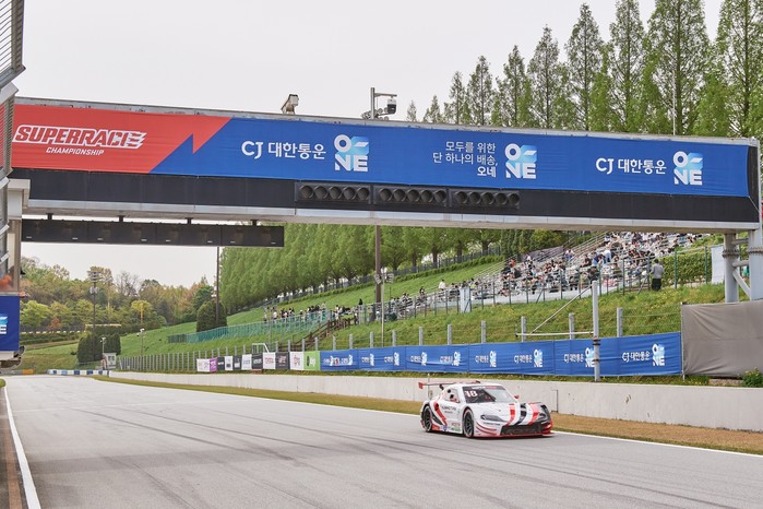 [사진 설명] 23일 경기도 용인에 위치한 에버랜드 스피드웨이에서 열린 2023 CJ대한통운 슈퍼레이스 챔피언십 슈퍼 6000 클래스 2라운드에서 2002년생 영건 드라이버 이찬준이 경기 종료