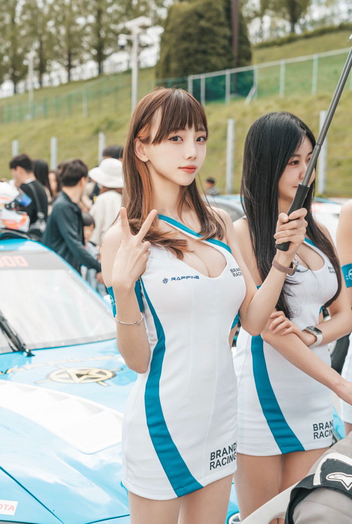 [사진설명] 2023 CJ대한통운 슈퍼레이스 관격들에게 사진포즈를 취해주고 있는 레이싱모델 심채원.