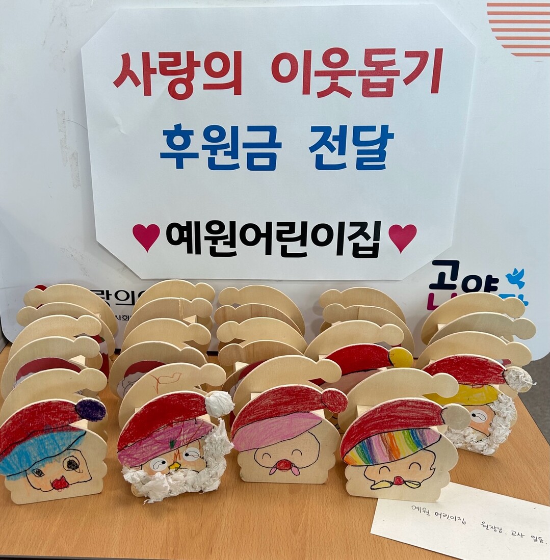 이날 기탁된 성금은 예원어린이집에서 성탄절을 맞이하여 어려운 이웃을 돕기 위해 14명의 원아들이 직접 꾸미고 저금한 산타 저금통과 원장, 교사들이 모은 기부금으로 마련됐다. 기탁된 성금은 추후 취약계층 지원을 위한 복지사업에 사용될 예정이다.