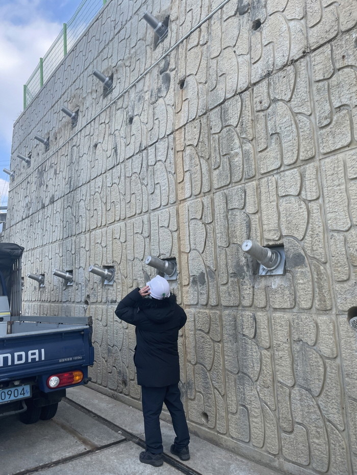 [사진설명] 해빙기 옹벽 안전점검 현장.