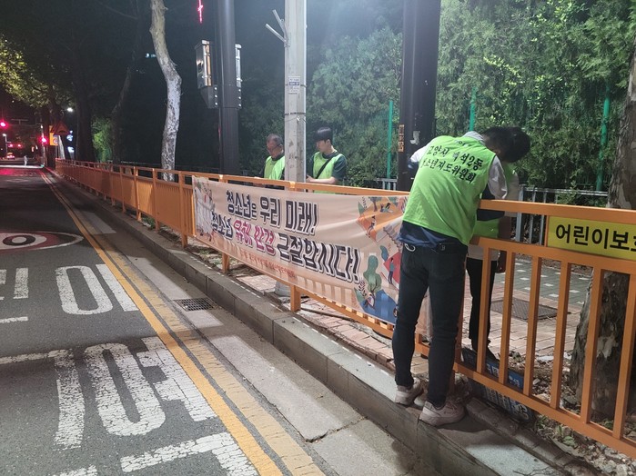 이날 회원들은 관내 학교와 상가밀집지역을 순찰하고 유해물품 판매, 금지물품 및 청소년 출입 시간제한 업소관련 홍보물 부착여부를 지도하고, 청소년 보호에 대한 공공의 주의를 환기하고자 청소년 보호 현수막을 부착했다.