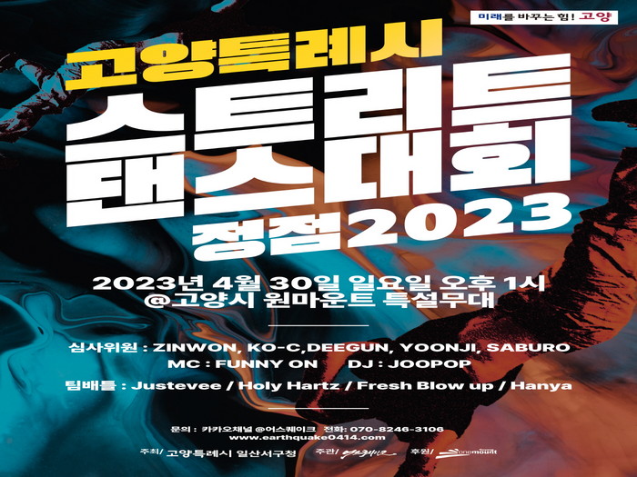 [부자동네타임즈 김인수기자] 고양특례시 일산서구는 오는 4월 30일 일산 원마운트 특설무대에서 국내 정상급 댄서들의 특별한 춤의 무대‘2023 고양특례시 스트리트 댄스대회’를 개최한다.
