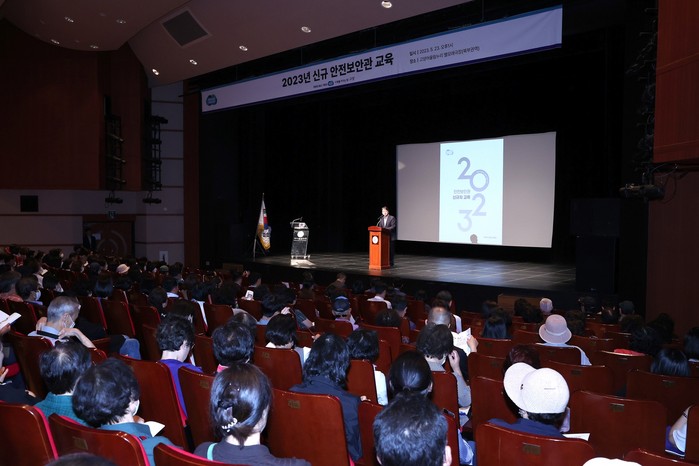 [부자동네타임즈 김인수기자] 지난 23일(화) 고양 어울림누리 별무리극장에서 ‘2023 경기 북부권 안전보안관 신규자 교육’을 실시했다. 이날 7개시 신규 안전보안관 372명이 참가했다.