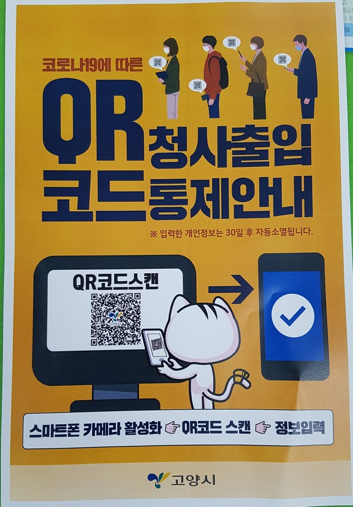 한편 고양시는 코로나19와 관련해 전국적으로 ‘생활 속 거리 두기’가 강조되면서, 지난 5월 25일부터 청사출입을 간편하고 스마트하게 관리하는 QR코드 도입을 시작했다.