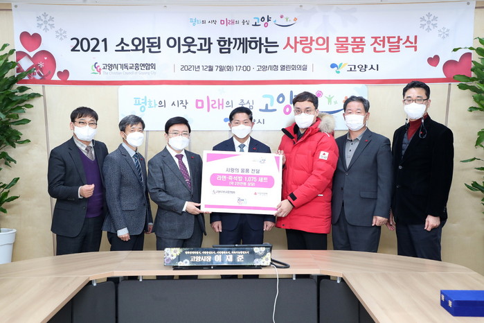 이날 전달식에는 이재준 시장과 고양시기독교총연합회 회장 문성욱 목사, 이정식 사무총장 등 고양시기독교총연합회 임원진과 관계자가 참석했다.