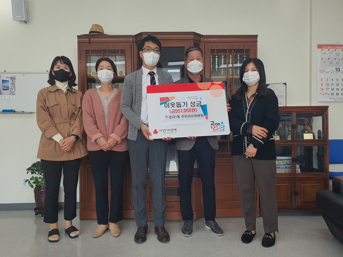주민자치회 기부금은 지난 7일 개최된 성사만물장터 운영 수익금 중 일부로 마련됐으며 어려운 이웃을 돕기 위해 기탁됐다.