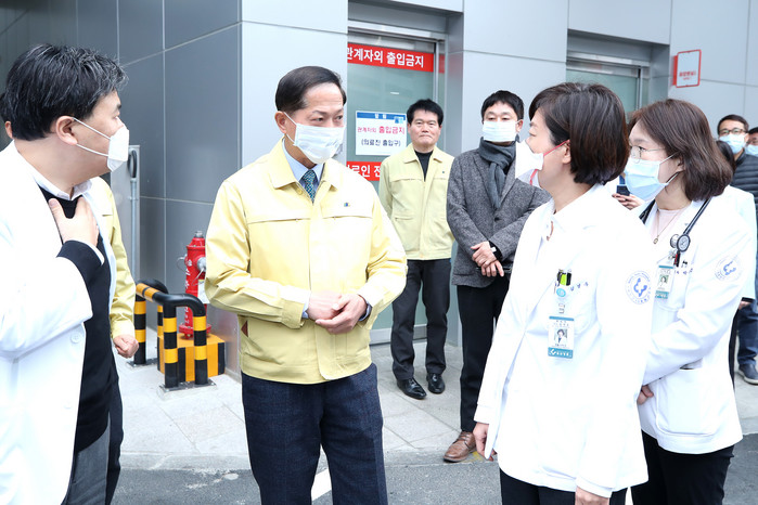 일산병원에서는 전화기로 진료가 가능한 철저히 격리 조치된 선별진료소를 돌아보고, 구비된 마스크와 손세정제 등을 살펴봤다. 출입객 관리방안과 면회방법 등을 묻고, “의료진도 확실히 자기보호를 해 가며 감염병 예방에 나서야 할 것”이라고 조언했다. 또한 “모든 의료종사자들에게 여느 때보다 시민들의 따뜻한 응원과 격려의 말 한마디가 필요한 시점”이라고 덧붙였다.