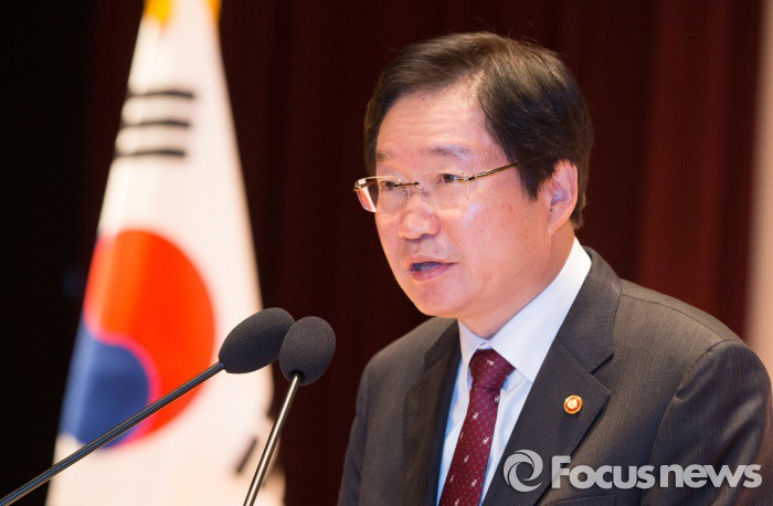 (세종=포커스뉴스) 김영석 신임 해양수산부장관이 11일 오후 세종시 정부세종청사 대강당에서 열린 취임식에 참석해 취임사를 하고 있다.