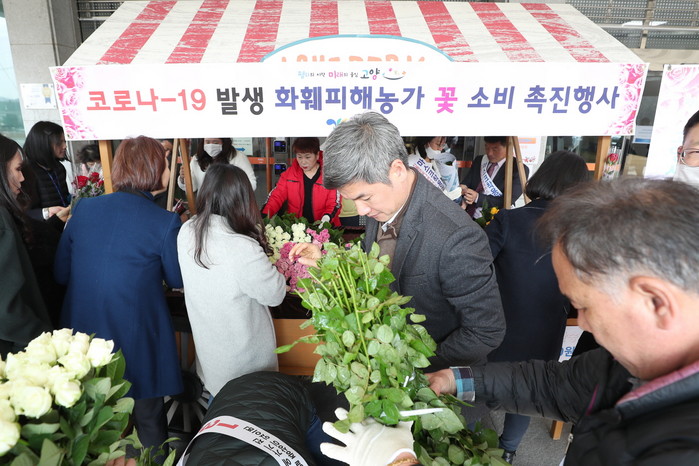고양시 화훼농가는 모두 587호로, 코로나19로 졸업식 · 입학식 등 각종 행사가 취소 · 연기돼 꽃 소비량이 작년대비 크게 줄어 농가들이 큰 어려움을 겪고 있다.