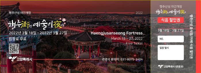 이번 야간개장에는 행주산성 주변 음식점과 카페가 함께 동참한다. 입장권을 제시하면 인근 25개 상점에서 10~20%의 메뉴 할인, 음료 서비스 등 혜택을 4월까지 제공한다. 참여 매장 입구에는 초록색 청사초롱을 달아 관람객이 쉽게 찾아갈 수 있도록 표시할 계획이다.