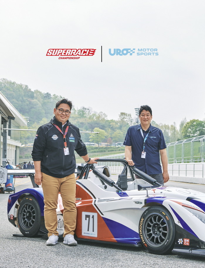[사진설명] 23일 용인시 에버랜드 스피드웨이에서 협약을 맺은 슈퍼레이스 김동빈 대표와 유로모터스포츠 김진태 대표.