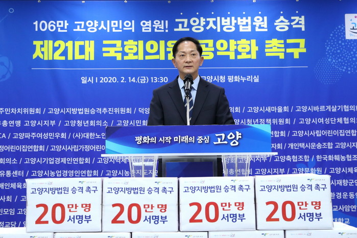고양시(시장 이재준)는 고양지방법원 유치를 요구하는 시민들의 서명이 7개월 만에 당초 목표인 20만 명을 넘어섰다고 밝혔다.