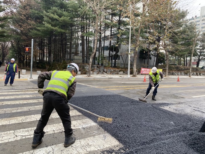 또한 12월 15일 관내 4cm 눈이 내려 제설제 240톤을 살포하여 도로결빙 없이 제설을 완료하였으나 제설작업으로 인한 포트홀 발생이 위험이 있어 12월 17일 추가로 도로를 신속하게 점검하여 포트홀 15개소에 대하여 정비를 완료하였다.
