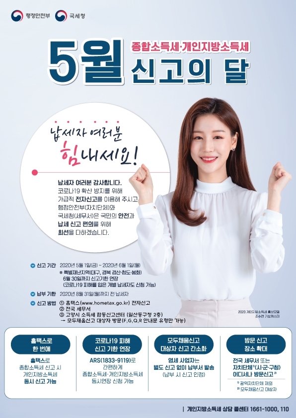 [부자동네타임즈 김인수기자] 고양시(시장 이재준)는 5월 1일부터 6월 1일까지 ‘고양시 소득세 합동신고센터’를 일산동구청 2층에 설치하고 2019년 귀속분 종합소득세(개인지방소득세) 신고를 받는다고 밝혔다.