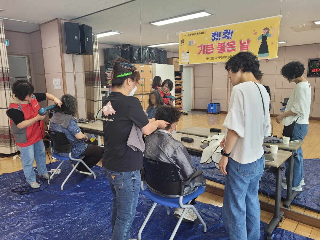 [부자동네타임즈 = 김인수 기자] 고양특례시 백석2동지역사회보장협의체가 지난 22일 백석2동 행정복지센터 4층 다목적실에서 ‘컷! 컷! 기분 좋은 날’이·미용 사업을 진행했다.