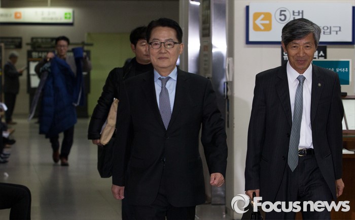 (서울=포커스뉴스) 박근혜 대통령 비선 ‘만만회’의 국정 농단 의혹을 제기했다가 명예훼손 혐의로 기소된 박지원(73‧전남 목포시) 새정치민주연합 의원이 14일 오후 서울 서초구 서울중앙지방법원에서 첫 공판에 참석하기 위해 법정으로 향하고 있다.