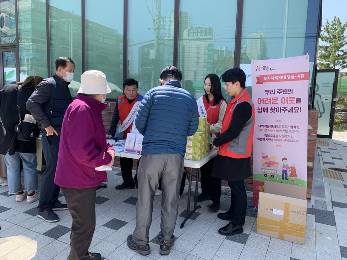 이날 찾아가는 복지상담소에서는 주민들을 대상으로 기초 복지 상담, 위기 이웃 발굴 안내, 고독사 방지 캠페인 활동을 진행하였으며, 복지사각지대에 놓인 취약계층을 적극 발굴하여 안내하는 내용의 홍보물품을 배부하였다.