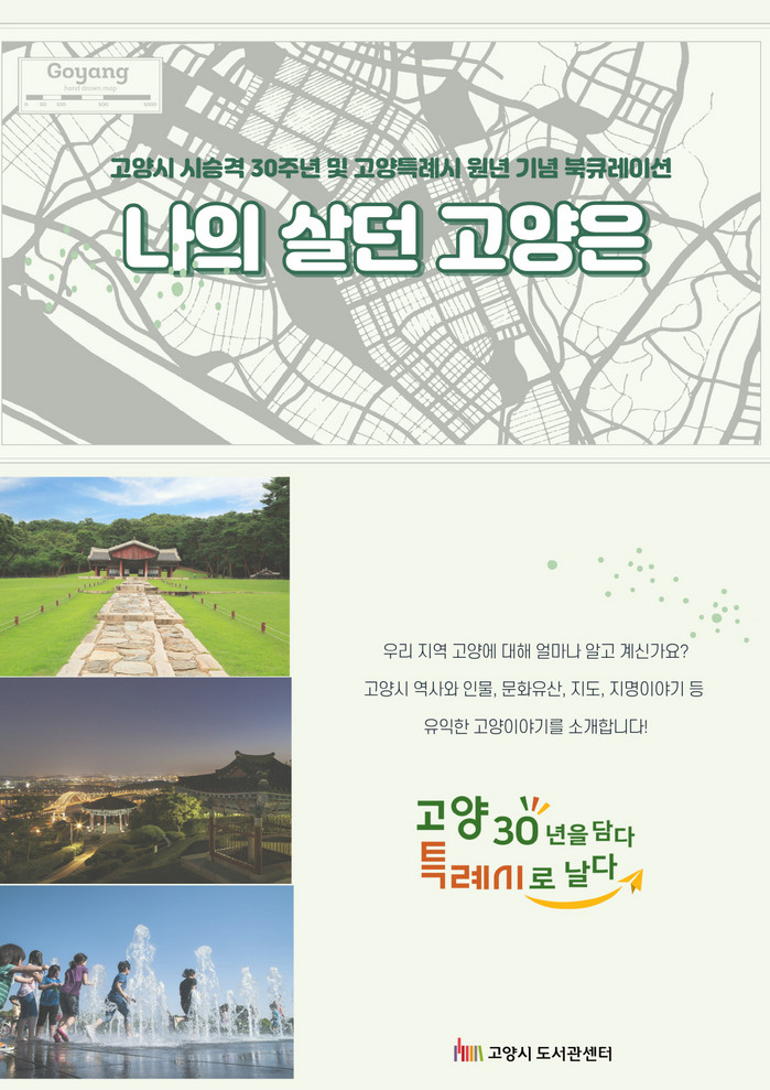 고양시 시승격 30주년 및 고양특례시 출범을 기념하기 위해 특별히 마련한 「나의 살던 고양은」북큐레이션에서는 고양시의 역사와 인물, 문화유산, 지명·마을이야기 등 다양한 고양시 관련 도서를 전시하고 이를 통해 그동안 잘 몰랐던 고양의 이모저모를 만나볼 수 있다.