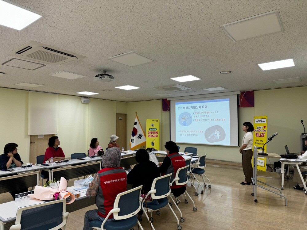 해당 교육은 각 동의 주민 생활과 밀접한 관계에 있는 지역사회보장협의체 위원들을 대상으로 다양한 위기 가구의 정의부터 신고체계 및 복지서비스를 설명하는 방식으로 진행되었으며, 일산서구 복지사각지대 이웃 찾기 채널인‘일산서구 희나리(희망을 나누는 이웃)’를 안내하고 가입을 독려하는 시간을 가졌다.