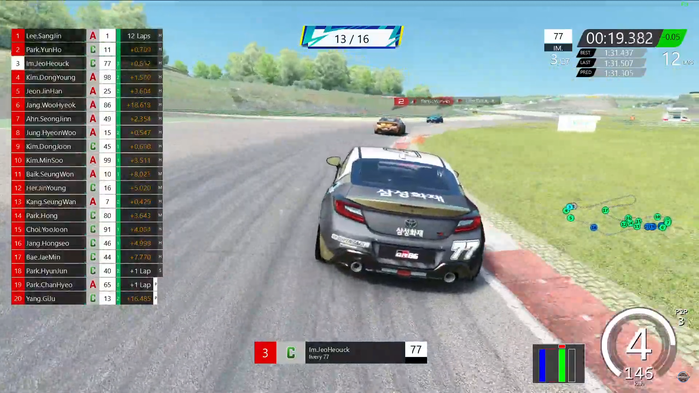 초반에는 이상진(24) 선수, 박윤호(18) 선수, 임재혁(27) 선수가 각각 1,2,3위로 레이스를 진행하였다. 3 LAP부터 박윤호(18) 선수가 선두 자리를 무섭게 노리는 모습이 보였다. 6 LAP에서 아웃코스 추월을 시도하던 박윤호(18) 선수가 PTP를 사용하며 결국 이상진(24) 선수를 추월하였으나, 실수를 하며 이상진(24) 선수에게 다시 추월 당하는 모습을 보여 긴장한 모습을 감추지 못하였다.