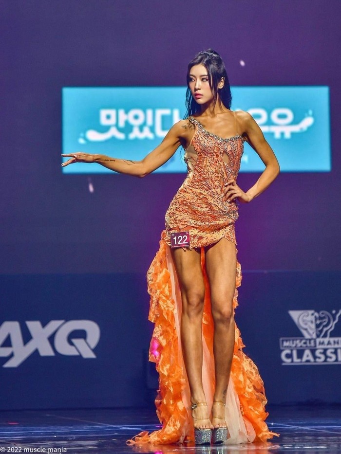 [사진설명] 2022년 맥스큐 머슬마니아 챔피언십 무대에서 자신에 매력을 표출하고 있는 정유미.