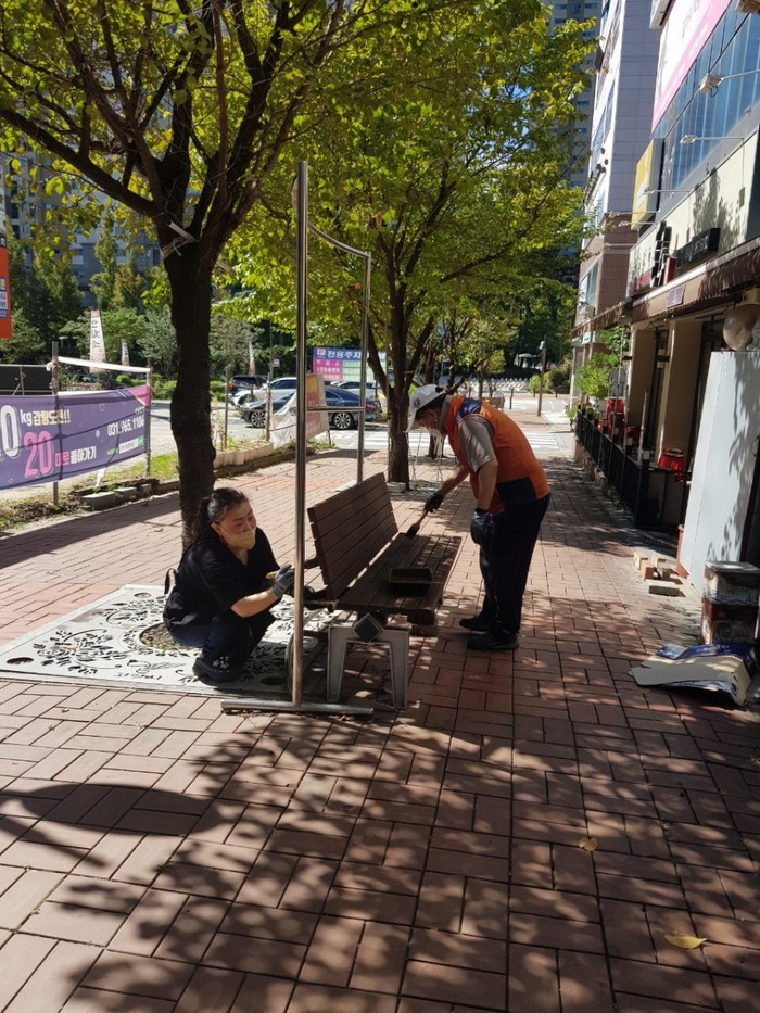 근린공원 내 설치된 벤치는 오랫동안 햇빛과 바람, 눈과 비에 노출돼 탈색이 되어 주민들의 이용이 점점 줄어들어, 벤치의 활용도를 높이기 위하여 재능기부 형식으로 노후 시설 정비에 나선 것이다.