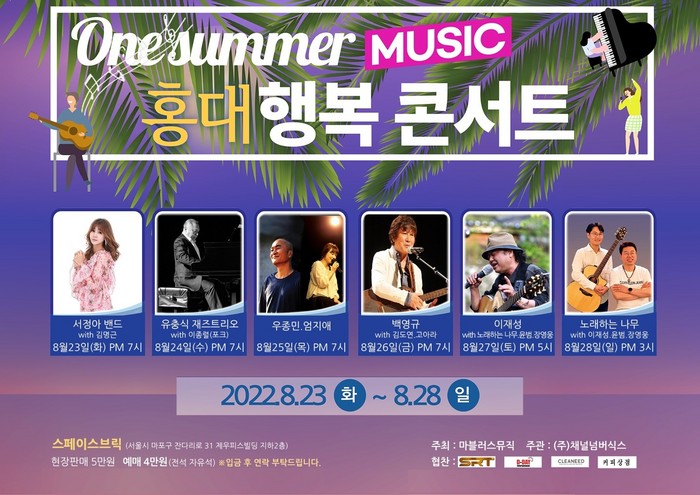 젊음의 거리 홍대에 위치한 '스페이스 브릭'에서 여름에 끝자락 다양한 장르에 음악들로 6일간의 행복 콘서트가 팬들을 찾아간다.
