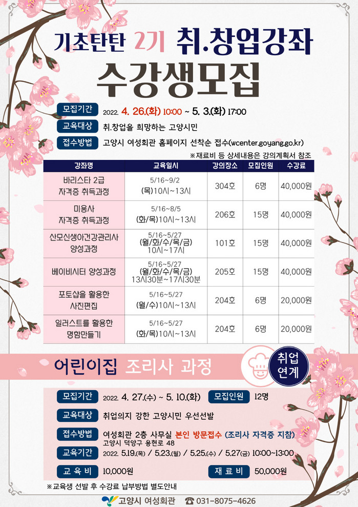 자세한 사항은 고양시 여성회관 홈페이지에서 확인할 수 있다.