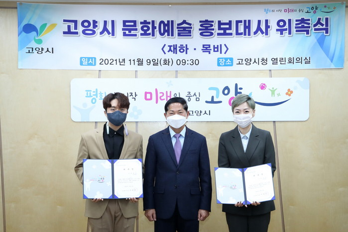 [부자동네타임즈 김인수기자] 고양시가 9일 시청 열린회의실에서 KBS 트롯 전국체전 준우승을 차지하며 이름을 알린 ‘재하’와 실력파 가수 ‘목비’를 고양시 문화예술 홍보대사로 위촉하고 위촉장을 수여했다.