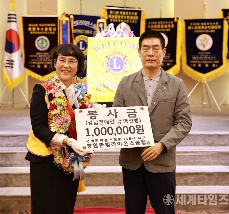 국제라이온스 355-C지구 창원한빛라이온스클럽에서는 2017년도 유금이 회장 취임 이후부터 2023-24년 제25대 김은숙 회장, 그리고 2024-25년 올해 취임하는 제26대 김영자 회장까지 8년에 걸쳐서 경상남도장애인수영연맹 (회장:강동환 )에 지속적으로 후원했다.