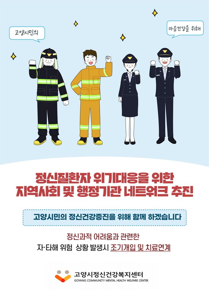 [부자동네타임즈 김인수기자] 고양시 정신건강복지센터(센터장 이정석)가 정신과적 어려움과 자·타해 우려가 있는 고양시민의 정신건강 및 안전을 위해 지역사회 및 관계기관과 협력한다.