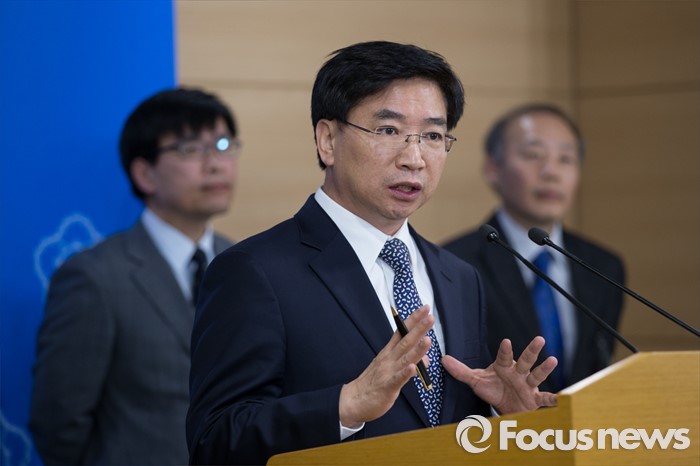| △ 2일 오후 2시 정부서울청사 본관 브리핑실에서 양병국 질병관리본부장이 건국대학교에서 발생한 집단 폐렴의 조사 상황과 향후 계획에 대해 브리핑하고 있다. 김흥구 기자 nine_kim@focus.kr |
