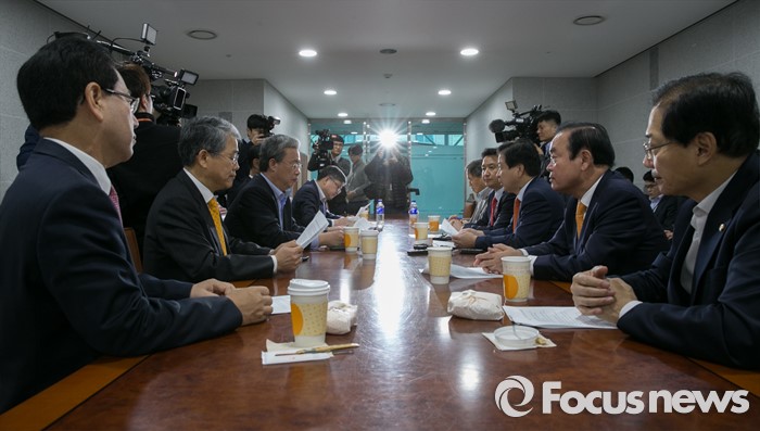 | △ 새정치민주연합 내 비주류 의원들의 모임인 '구당모임'이 14일 문재인 새정치연합 대표의 사퇴를 전제로 한 비상대책위원회를 구성하자는 내용의 성명을 발표했다. 사진은 이달 8일 열린 구당모임 모습. <사진제공=포커스뉴스> |