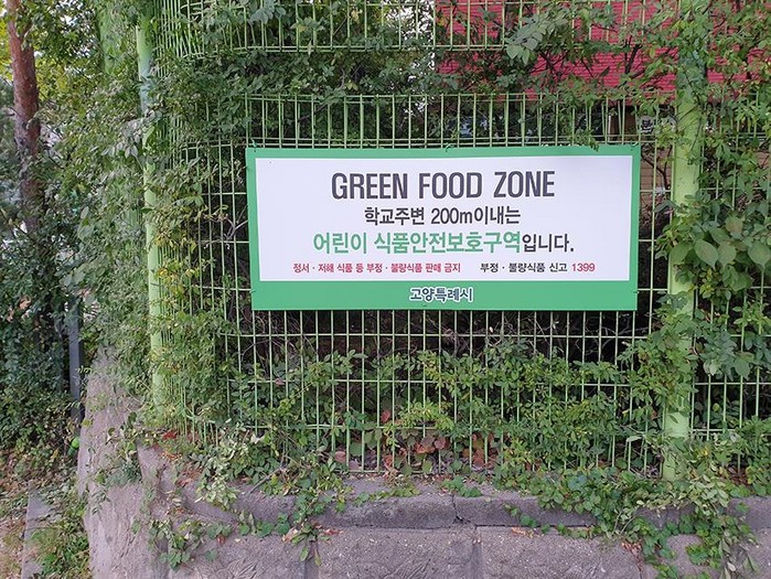 어린이 식품안전보호구역은 학교와 해당학교의 경계선으로부터 직선거리 200미터의 범위 안의 구역을 말하며, 표지판은 구역 내 학교 정·후문 근처 및 학교로 이어지는 도로 등에 설치하도록 규정돼 있다.