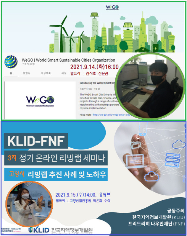 9월 15일에는 한국지역정보개발원(KLID)과 프리드리히 나우만재단(FNF)이 공동으로 주최하는 ‘3차 정기 온라인 리빙랩 세미나’를 통해 고양 스마트시티 리빙랩 사업에 의한 지역혁신 사례를 발표한다. 시가 2018년부터 추진한 리빙랩의 다양한 성과가 공개될 예정이다.
