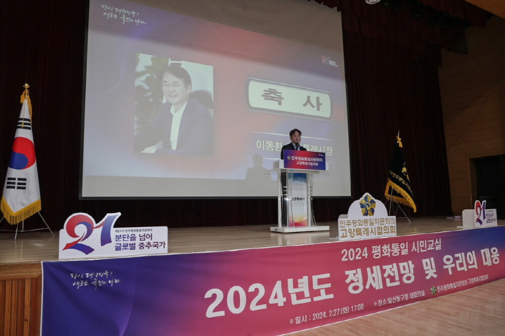 이번 정기회의는 자문위원 뿐만 아니라 통일 공감 확산을 위해 고양시민을 대상으로 확대 개최했으며 ▲김민석 강사(전 국방부 대변인)의 ‘한반도 정세에 따른 민주평통의 역할’특별강연 ▲2023 회계보고 ▲2024 사업계획 보고 순으로 진행됐다.