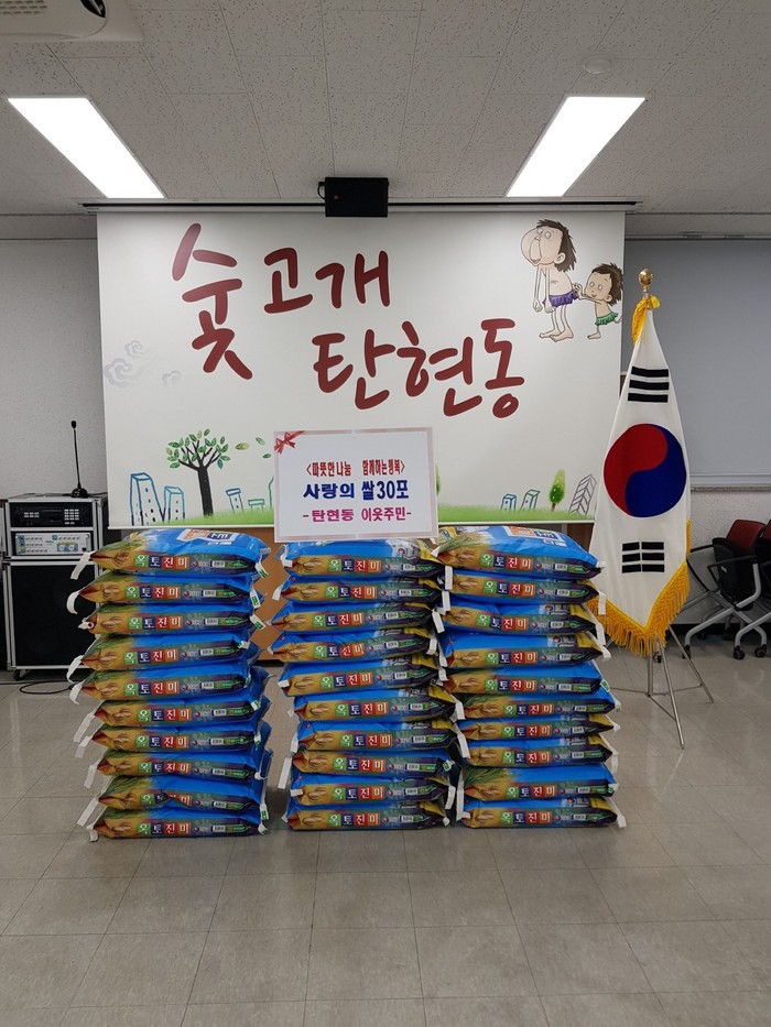 박상원 탄현동장은 “모두가 힘든 시기에 이렇게 사랑의 쌀 30포를 나눔해주신 익명의 기부자님께 감사드린다”며, “어려운 이웃들을 생각하시는 탄현동 주민들의 따뜻한 마음에 다시한번 고마운 마음을 전하며, 후원해주신 사랑의 쌀은 독거노인, 장애인, 한부모 가정 등 어려운 이웃들에게 정성껏 전달하겠다”고 밝혔다.