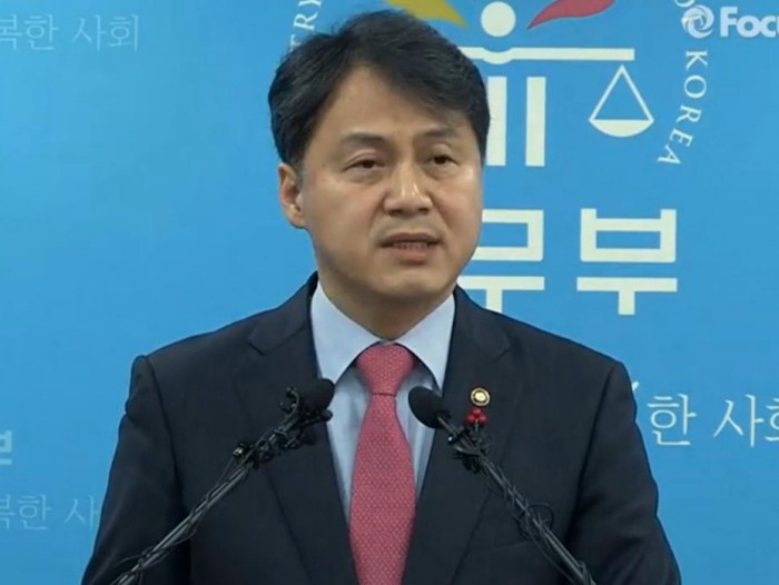 △ 김주현 법무부 차관이 지난 3일 정부과천청사에서 '2021년까지 사시 폐지 유예' 입장을 발표하고 있다. <사진제공=포커스뉴스> |