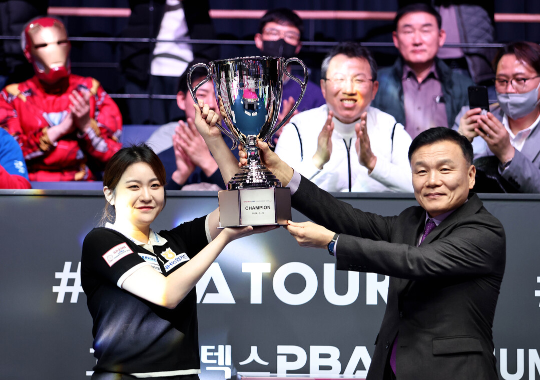 지난 25일 경기도 고양시 ‘고양 킨텍스 PBA 스타디움’에서 열린 ‘크라운해태 LPBA 챔피언십 2024’ 결승전서 김민아는 스롱 피아비(캄보디아·블루원리조트)를 세트스코어 4:1(8:11, 11:10, 11:0, 11:2, 11:7)로 꺾고 정상을 밟았다.