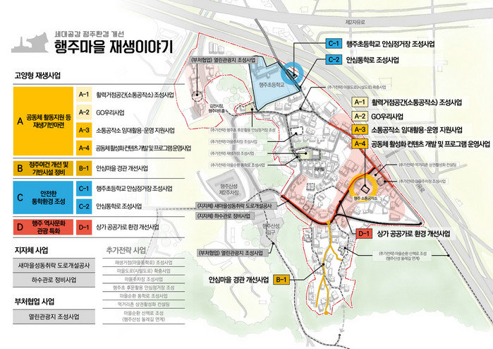 시 관계자는 “행주지역의 노후된 정주여건 및 통학환경 개선 등 주민요구가 높은 생활밀착형 사업 위주의 고양형 도시재생사업을 추진하여 행주지역의 재생기반을 마련하고, 향후 행주산성 등 지역의 다양한 자원과 연계해 역사문화관광 특화마을을 조성할 수 있는 기반을 마련하겠다”고 말했다.