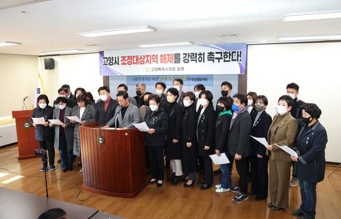 이에 고양특례시의회(의장 김영식)에서는 9월 27일 제267회 제1차 정례회에서 고양시의 조정대상지역 해제를 촉구하는 결의문을 만장일치로 채택하고 국토교통부, 국회, 경기도 등 관련기관에 요구하였으며, 11월 4일에는 의원 공동 명의로 성명서를 발표하고 조정대상지역 해제를 촉구한 바 있다.