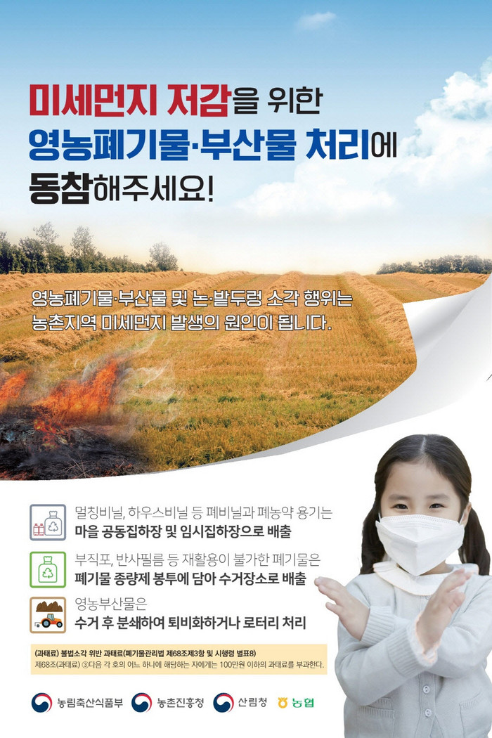 구 관계자는 “영농폐기물 불법소각 및 매립은 산불 및 미세먼지 발생의 원인이 되므로 올바른 배출을 통해 깨끗한 농촌 환경을 조성할 수 있도록 농가와 시민들의 적극적인 협조 부탁드린다”고 말했다.