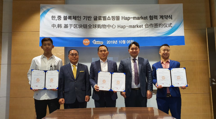[부자동네타임즈 김인수기자] 주식회사 엠투디바인은 한국에 글로벌쇼핑몰 하프마켓(HAP-market)과 대한트레이너협회(KTA)와 협력하여 스포츠복지몰등 국내 종합쇼핑몰을 운영중에 있다. 이번 5일 중국기업 심천신주수마고분유한공사(深圳神州数码股份有限公司)와 블록체인 기반 쇼핑플랫폼 구축이 완료된 하프마켓(HAP-market)의 전격적인 중국시장 진출을 위한 협약 및 계약식이 진행되었다.