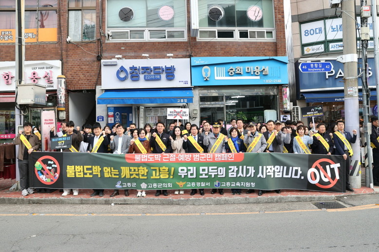 [부자동네타임즈=이현석 기자] 고흥군(군수 공영민)은 20일 고흥읍 파리바게뜨 로터리에서 고흥군의회, 고흥경찰서, 고흥교육지원청과 합동으로 ‘불법도박 근절 및 예방을 위한 범군민 캠페인’을 전개했다고 밝혔다.
