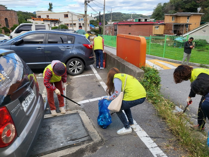 이날 한글날과 대체공휴일을 포함한 주말 3일간 관내에 버려진 쓰레기를 치우기 위해 고양동 통장협의회원, 행정복지센터 직원 30여명이 대청소에 참가했다.